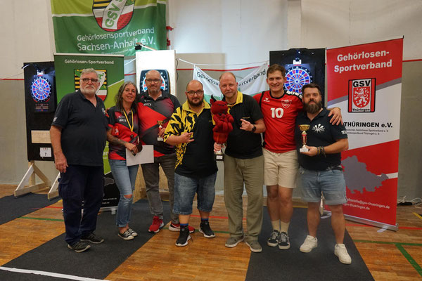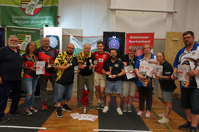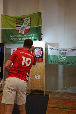 Die erste Mitteldeutsche Gehörlosen-Einzelmeisterschaft und Doppelmeisterschaft im Dart in Halle (Saale) fand am Samstag, den 20. September, statt. Die drei teilnehmenden Bundesländer waren Sachsen, Thüringen und Sachsen-Anhalt. Es traten ca. 35 Darts-Spieler*innen aus den mitteldeutschen Bundesländern an. Aus Sachsen-Anhalt spielten insgesamt 18 Sportler*innen. Gespielt wurde an 8 Dartautomaten.